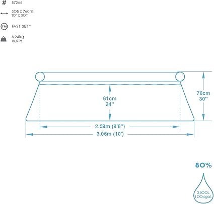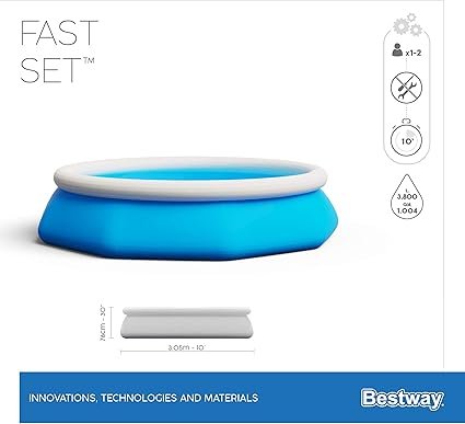 La piscina Bestway Fast Set de 305×76 cm es perfecta para disfrutar del verano en familia. Su diseño autoportante permite un montaje rápido y sencillo.